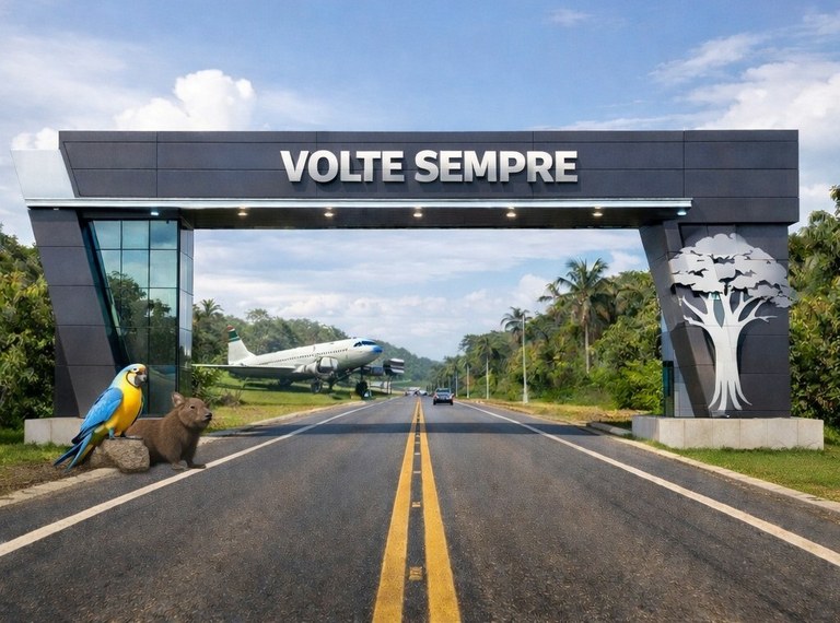 De acordo com a justificativa apresentada pelo parlamentar, o pórtico deverá contar com elementos que valorizem a identidade cultural, ambiental e histórica de Alta Floresta, incorporando referências à floresta amazônica e à bioeconomia regional. Entre as sugestões estão a instalação de um letreiro de boas-vindas, símbolos locais como a arara-canindé, capivara, castanheira e o tradicional “Zog Zog”, além da frase “Eu amo Alta Floresta”, acompanhada de um coração azul.
