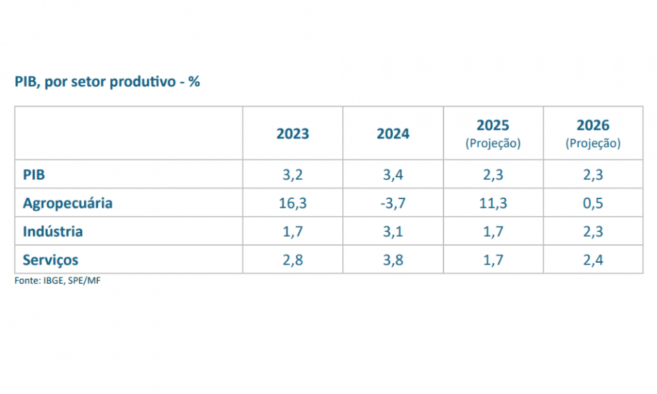 Projeção da Secretaria de Política Econômica indica avanço de serviços e indústria, com desempenho mais fraco da agropecuária