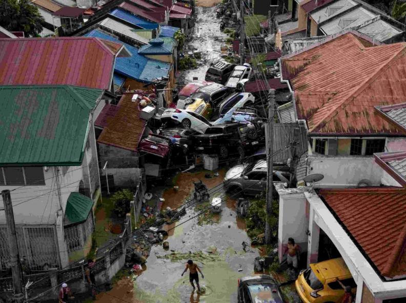 As inundações consideradas sem precedentes afetaram esta semana povoados e cidades de Cebu, onde arrastaram veículos, barracos e até mesmo enormes contêineres de transporte. Após deixar o território filipino, Kalmaegi ganhou força enquanto segue rumo ao Vietnã, onde há o temor de que toque o solo na noite desta quinta. Em Liloan, um povoado perto da cidade de Cebu onde 35 corpos foram retirados das zonas inundadas, jornalistas da AFP viram carros empilhados um sobre o outro e telhados arrancados de edifícios, cujos moradores tentavam remover a lama.