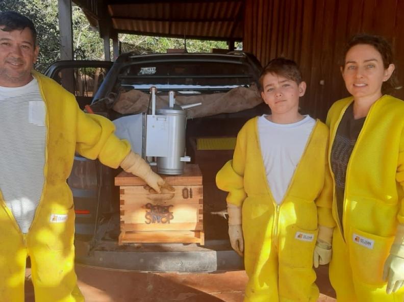 Segundo Valéria, o apoio recebido da Prefeitura de Sinop foi essencial para o desenvolvimento do negócio e para a expansão da produção. “Participamos da associação de apicultores e recebemos apoio direto da Secretaria de Desenvolvimento Econômico, por meio do diretor de Agricultura, Luis Paulo. Recebemos doações de caixas de abelha, macacões, fumigadores e outros kits que fazem toda a diferença na rotina da produção. Esse suporte foi fundamental para crescermos”, destacou. Além desses equipamentos, a Cooperativa Agropecuária Mista de Produtores Rurais de Sinop - Associação dos Apicultores, entidade na qual a família integra recebeu do Executivo Municipal, um caminhão furgão refrigerado para auxiliar no transporte das produções derivadas do mel.