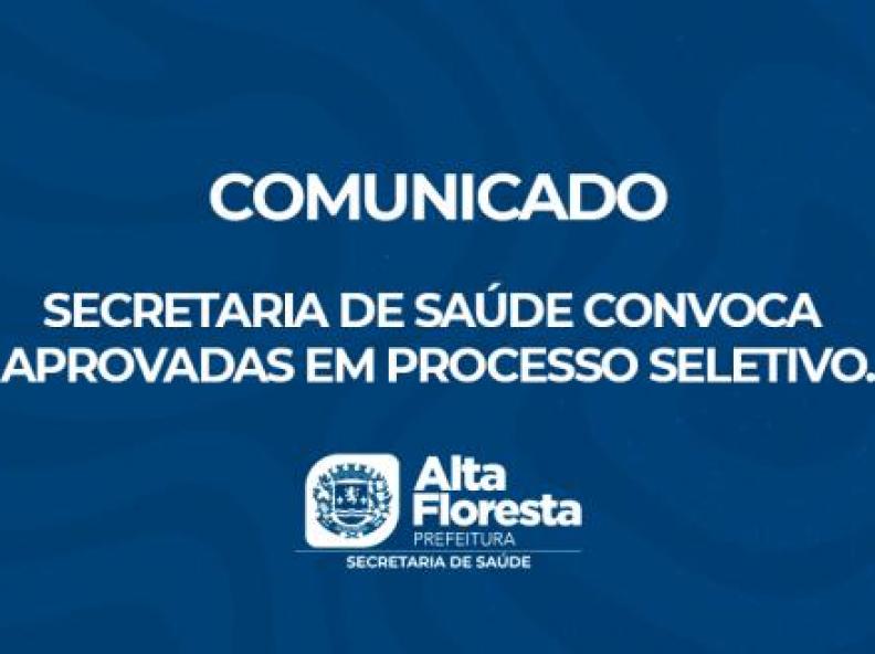 A Secretaria Municipal de Saúde de Alta Floresta convoca as candidatas abaixo relacionadas, aprovadas no Processo Seletivo 001/2025 para o cargo de Agente Comunitário de Saúde, a comparecerem à Secretaria de Saúde, na sala da Atenção Básica, para dar continuidade aos procedimentos de contratação.