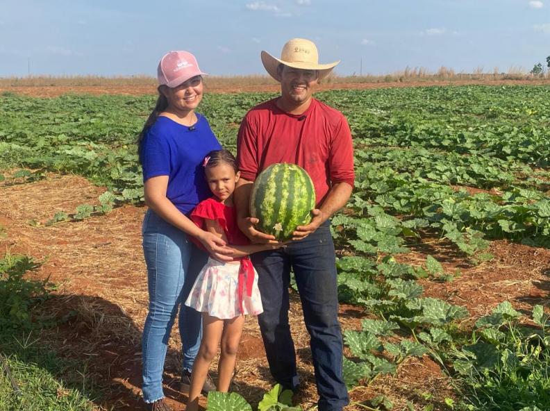 O casal Flávio José Cândido Ferreira e Narya Xavier são proprietários de uma área de 37 hectares em Bom Jesus do Araguaia, a 866 km de Cuiabá. Eles são um dos milhares de produtores beneficiados pelos investimentos do Governo do Estado, por meio da Secretaria de Estado de Agricultura Familiar (Seaf/MT), e pelo apoio técnico da Empresa Mato-grossense de Pesquisa, Assistência e Extensão Rural (Empaer). Eles começaram cultivando apenas meio hectare e hoje já produzem em quatro hectares, com expectativa de chegar a sete nos próximos anos.