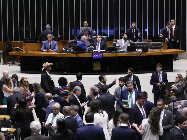 Diante de impasses em torno do texto, a sessão chegou a ser suspensa para negociações comandadas pelo presidente da Casa, Hugo Motta (Republicanos-PB).