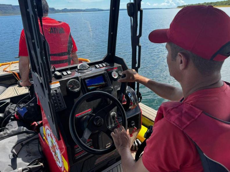 As buscas seguem em andamento para localizar o piloto da embarcação e o pai da criança, que permanecem desaparecidos. As equipes continuam realizando buscas superficiais, com o uso de sonar da embarcação.